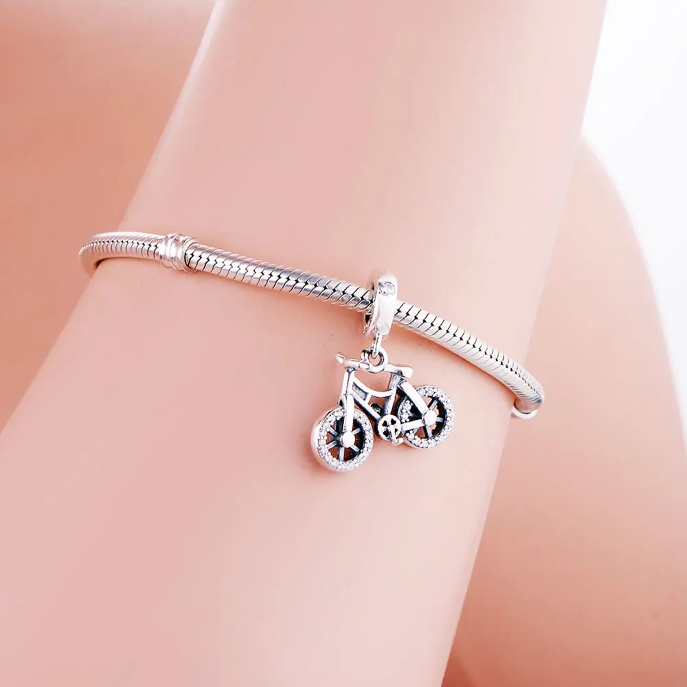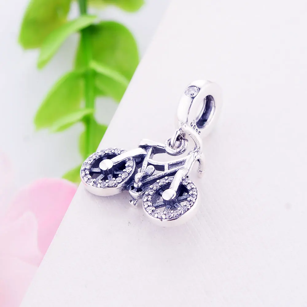 New 925 Sterling Silver Bead Charm Brilliant Bicycle Dangle Pendant Beads Fit Original Pandora Charm Br
