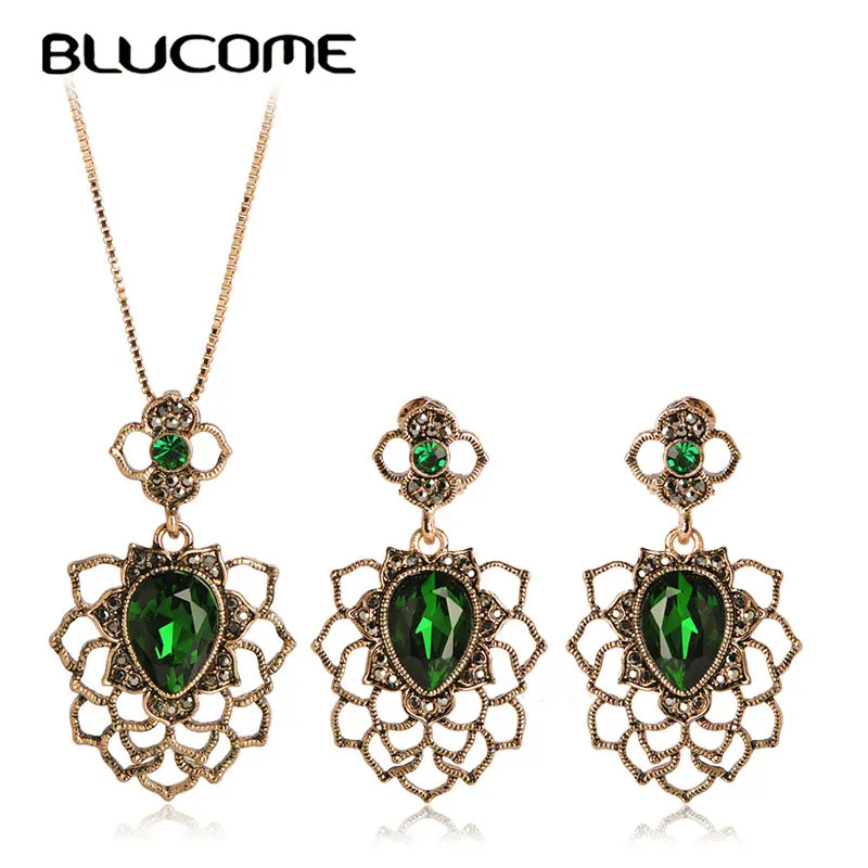 Buy Blucome Classic Green Rhinestone Flower Pendant Necklace Earrings Jewelry Sets Bridal Wedding Party