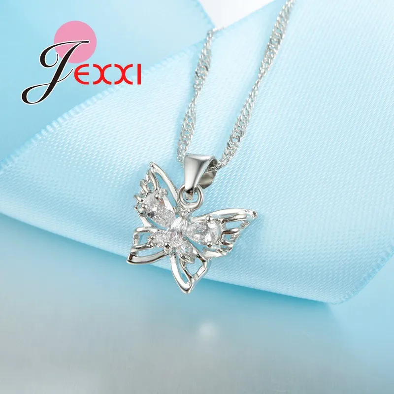 Best Pendientes Austrian Crystal Jewelry Sets Women 925 Sterling Silver Pendant Necklace Earring Wedding