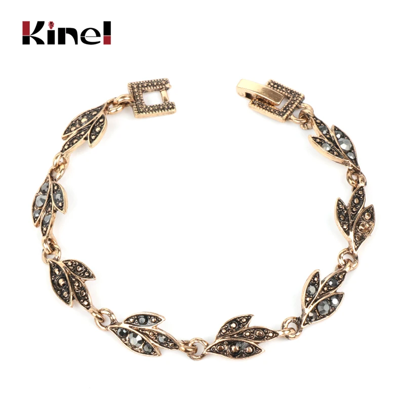 Buy Kinel Fashion Charm Bracelets Bohemian Ethnic Black Crystal Petal Bracelets & Bangles For Women Vin