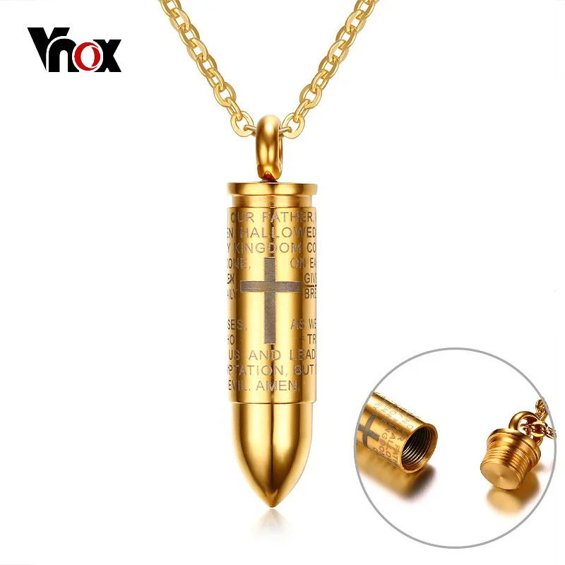 Buy Vnox Bullet Pendant for Men Engraved Cross Lord Bible Prayer Necklace Stainless Steel Male Jewelry
