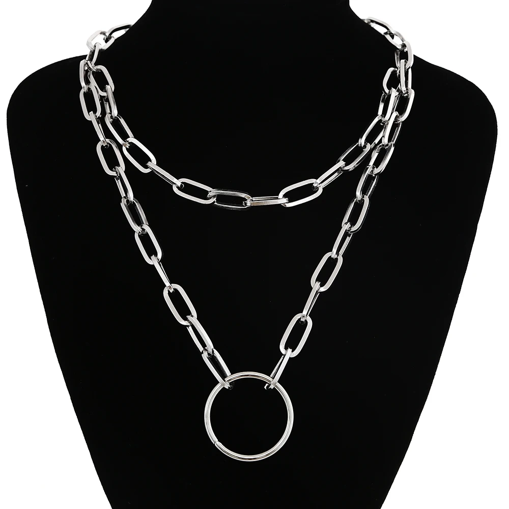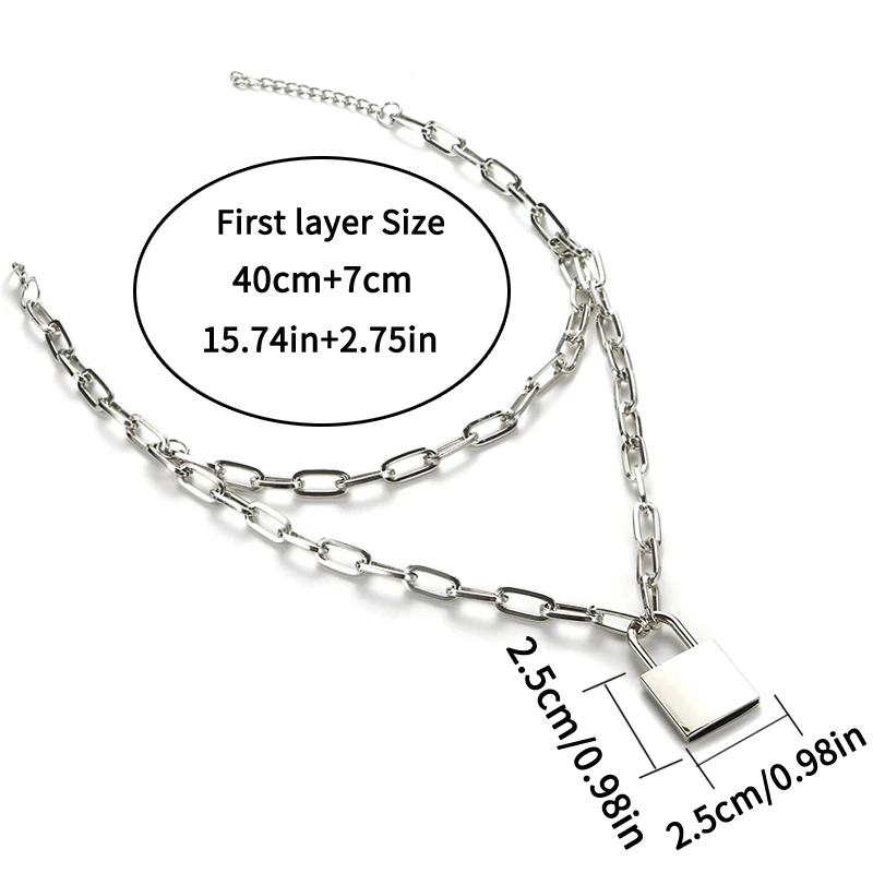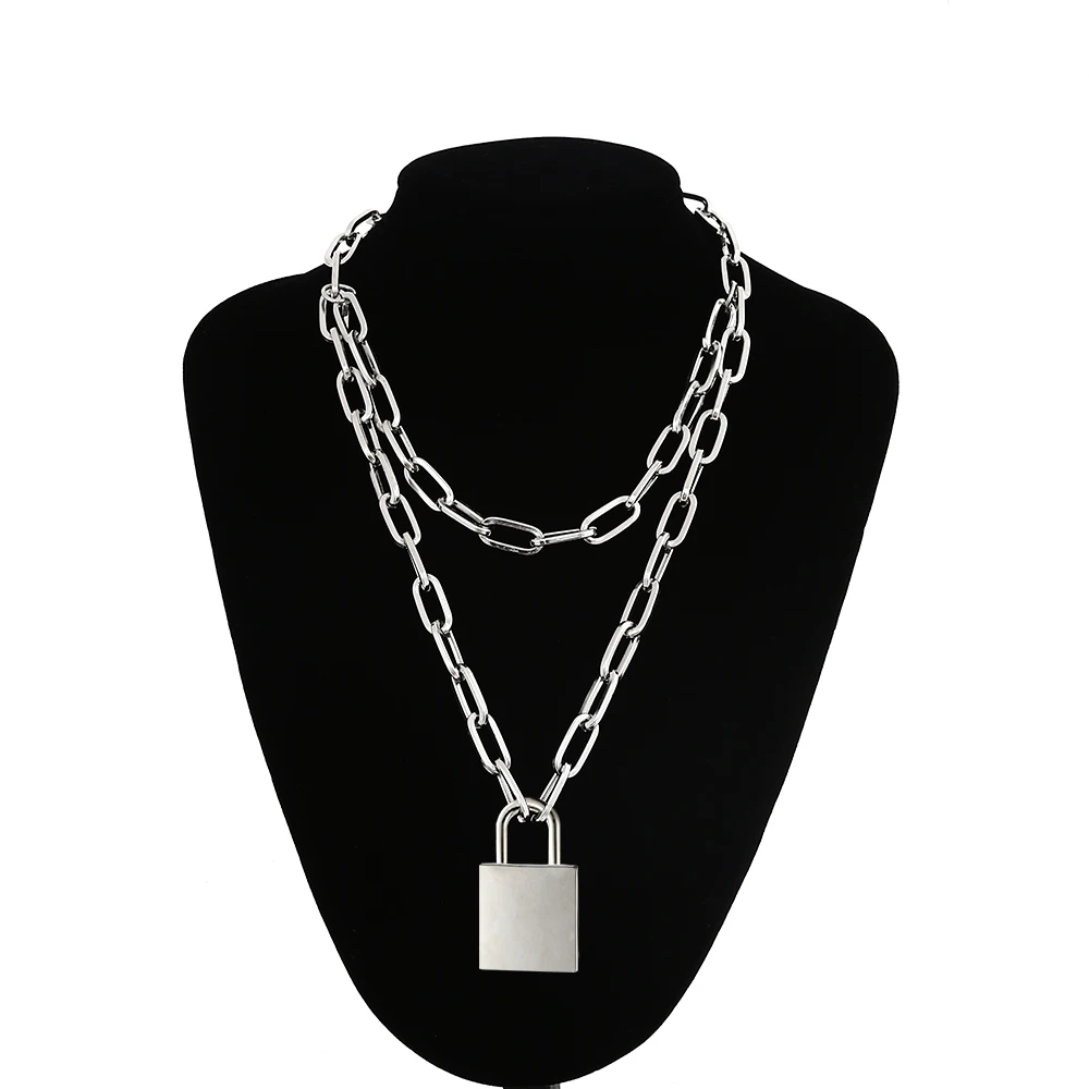 New 90s Double layer chain necklace with lock women/men punk rock padlock pendant necklace Vintage emo