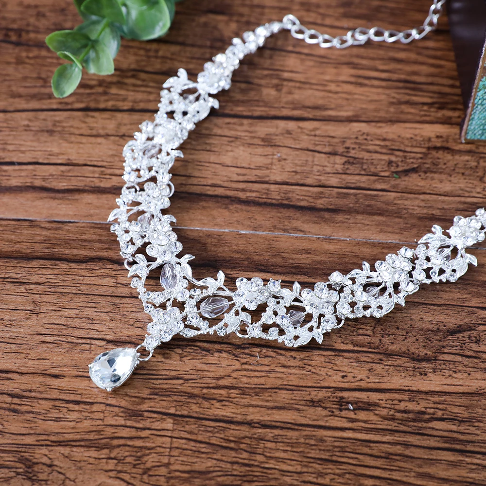 Best Fashion Rhinestone Bridal Wedding Jewelry Sets 3PCS/Set Necklace Earrings Tiara Girl Party Crown Ch
