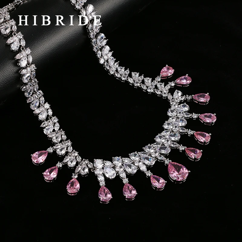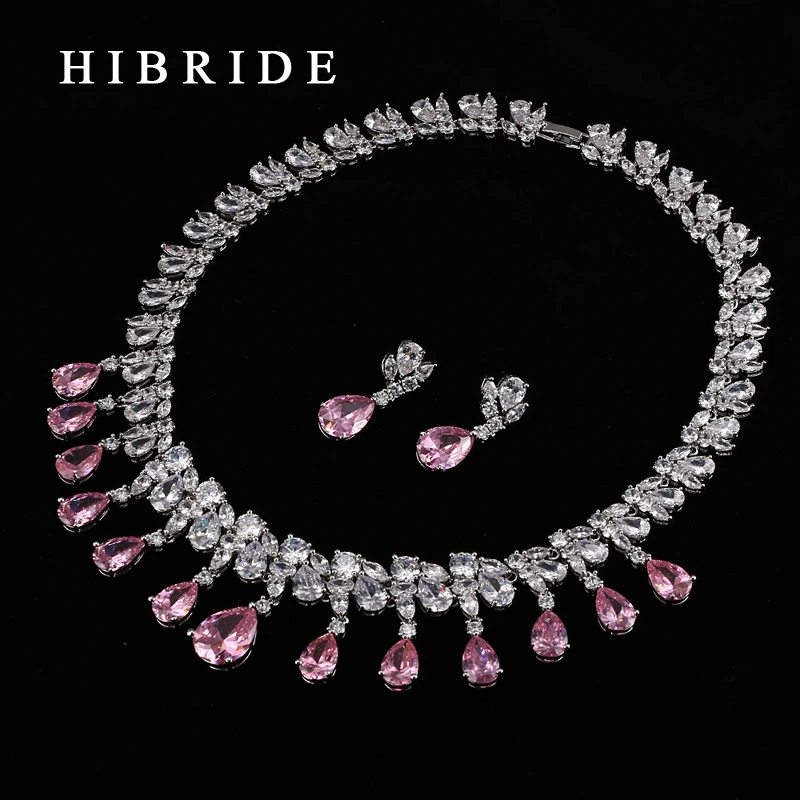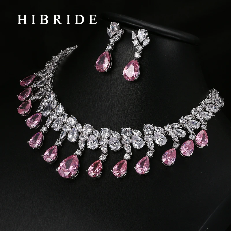 Promo HIBRIDE Top Quality Tear Drop Shape AAA Cubic Zirconia Bridal Wedding Jewelry SetsWhite Gold Color