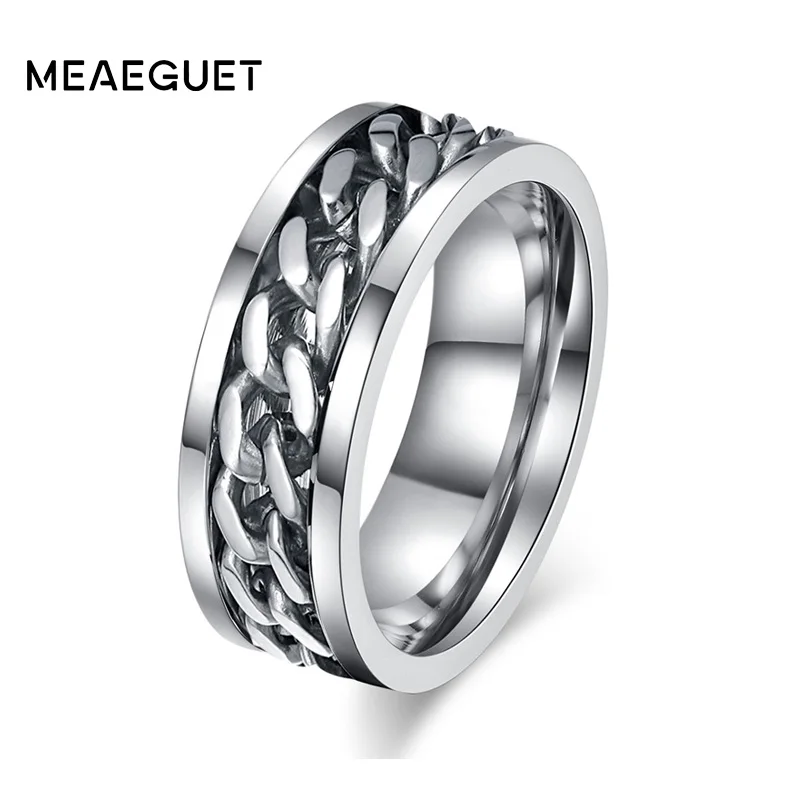 Promo Rotatable Chain Men Rings Stainless Steel Spinner Reliever Stress Jewelry Black Gold Silver Color