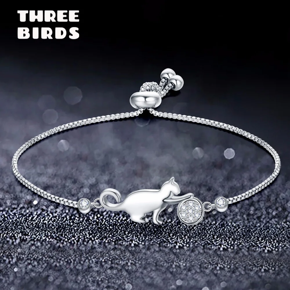 Best Trendy Cubic Zirconia Silver crystal Cat and Ball charm Bracelets for Women Fashion korean Jewelry